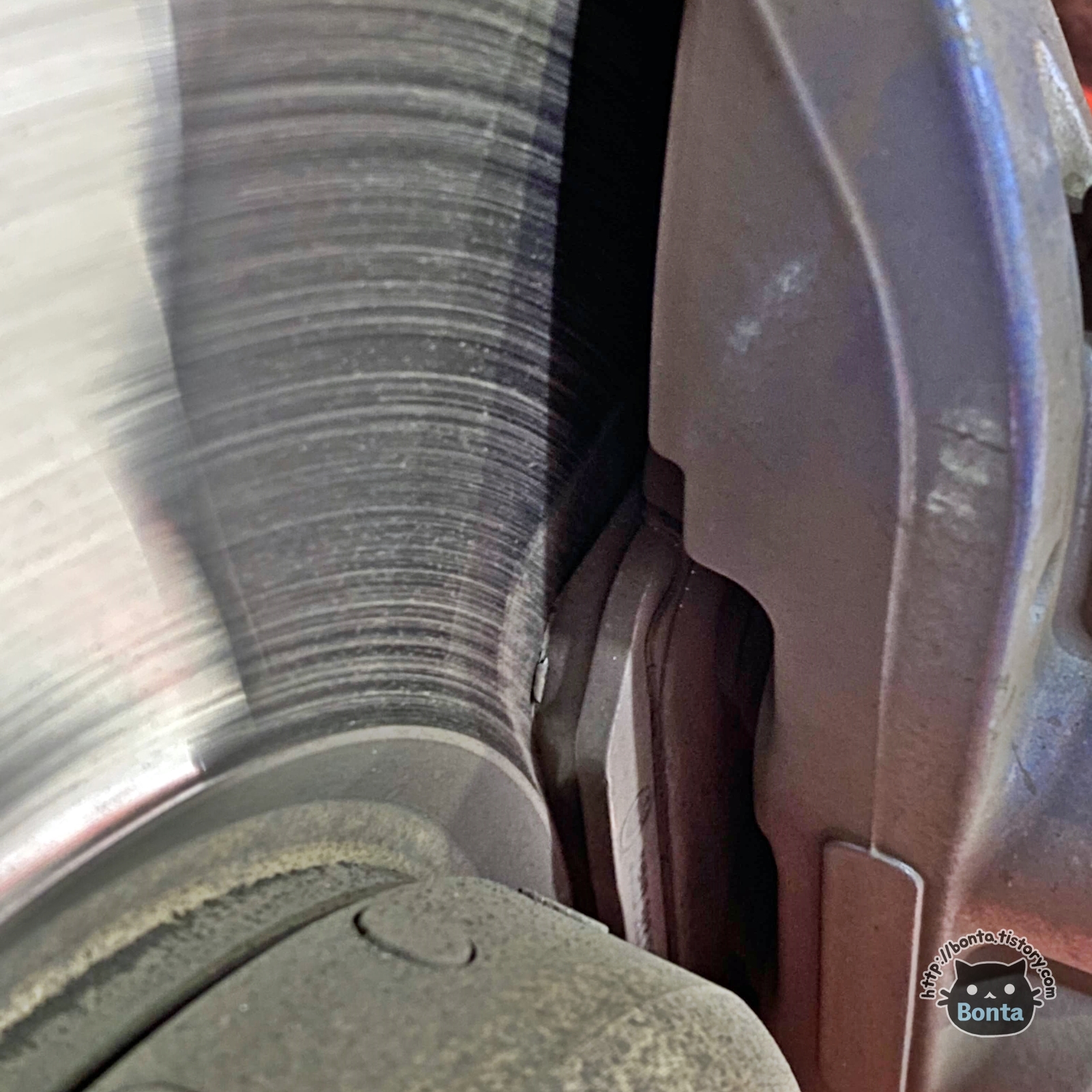 마찬가지로 휠을 내린 김에 전륜 브레이크 패드 잔량도 확인.