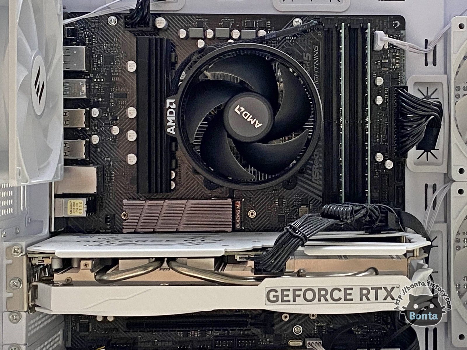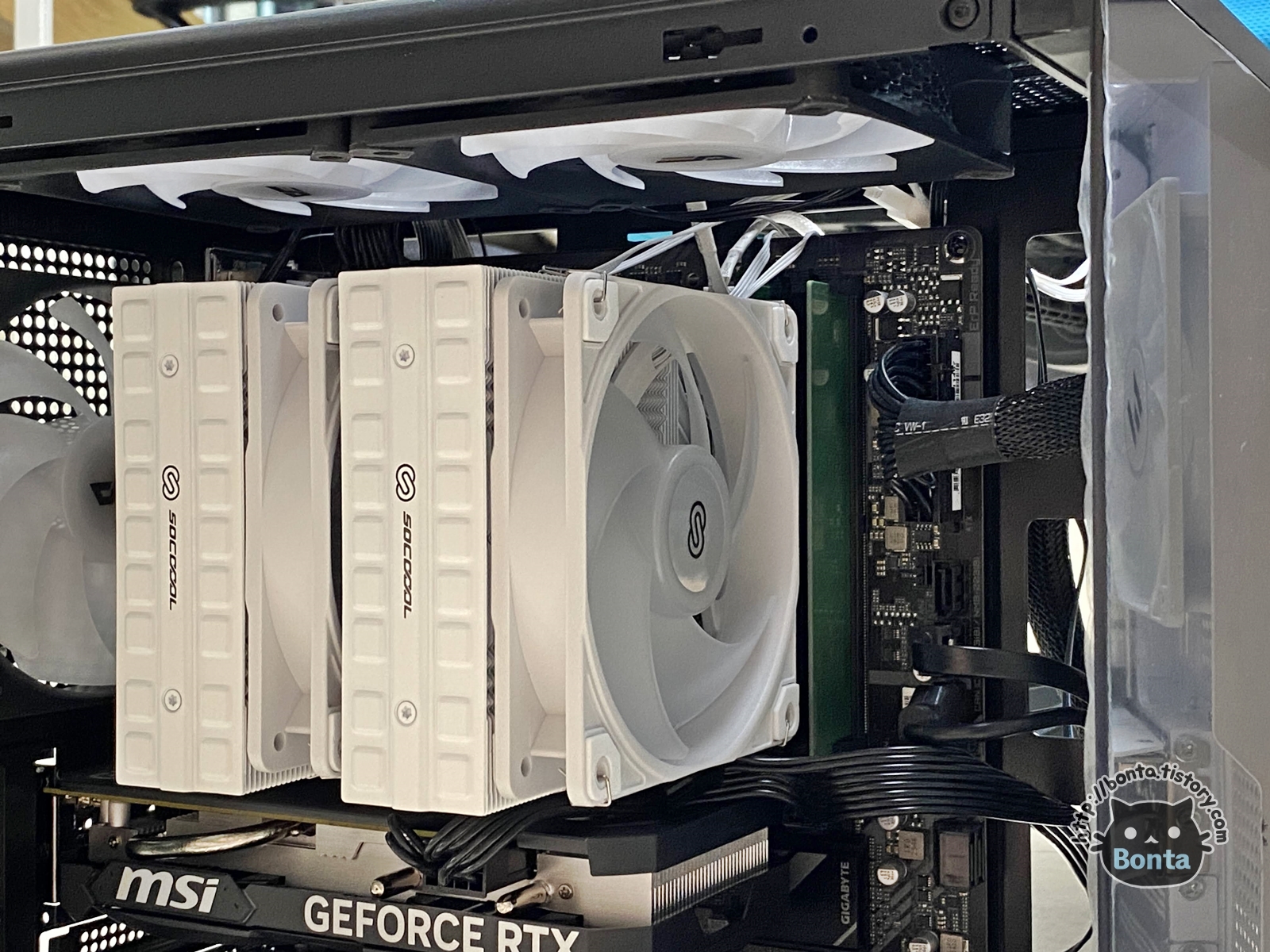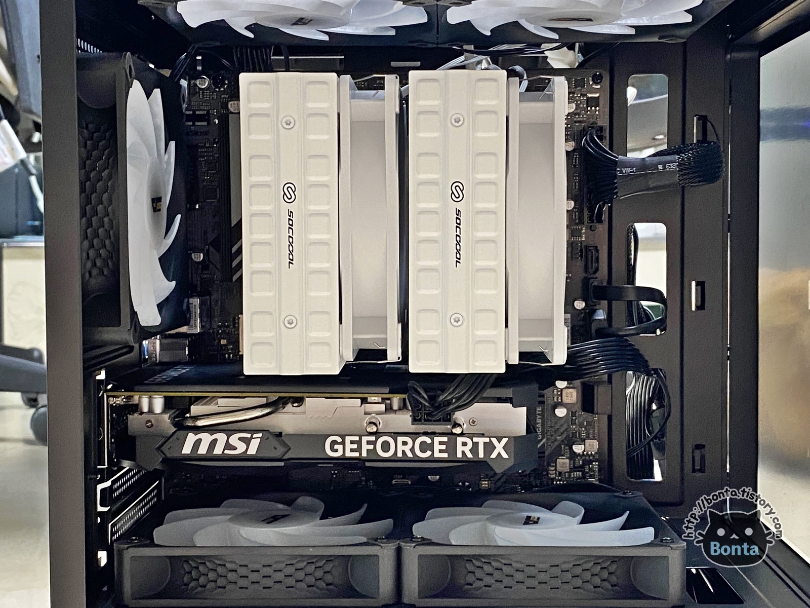 CPU 쿨러도 그렇고 케이스에 붙은 팬들도 그렇고 발열 걱정은 없을 듯.