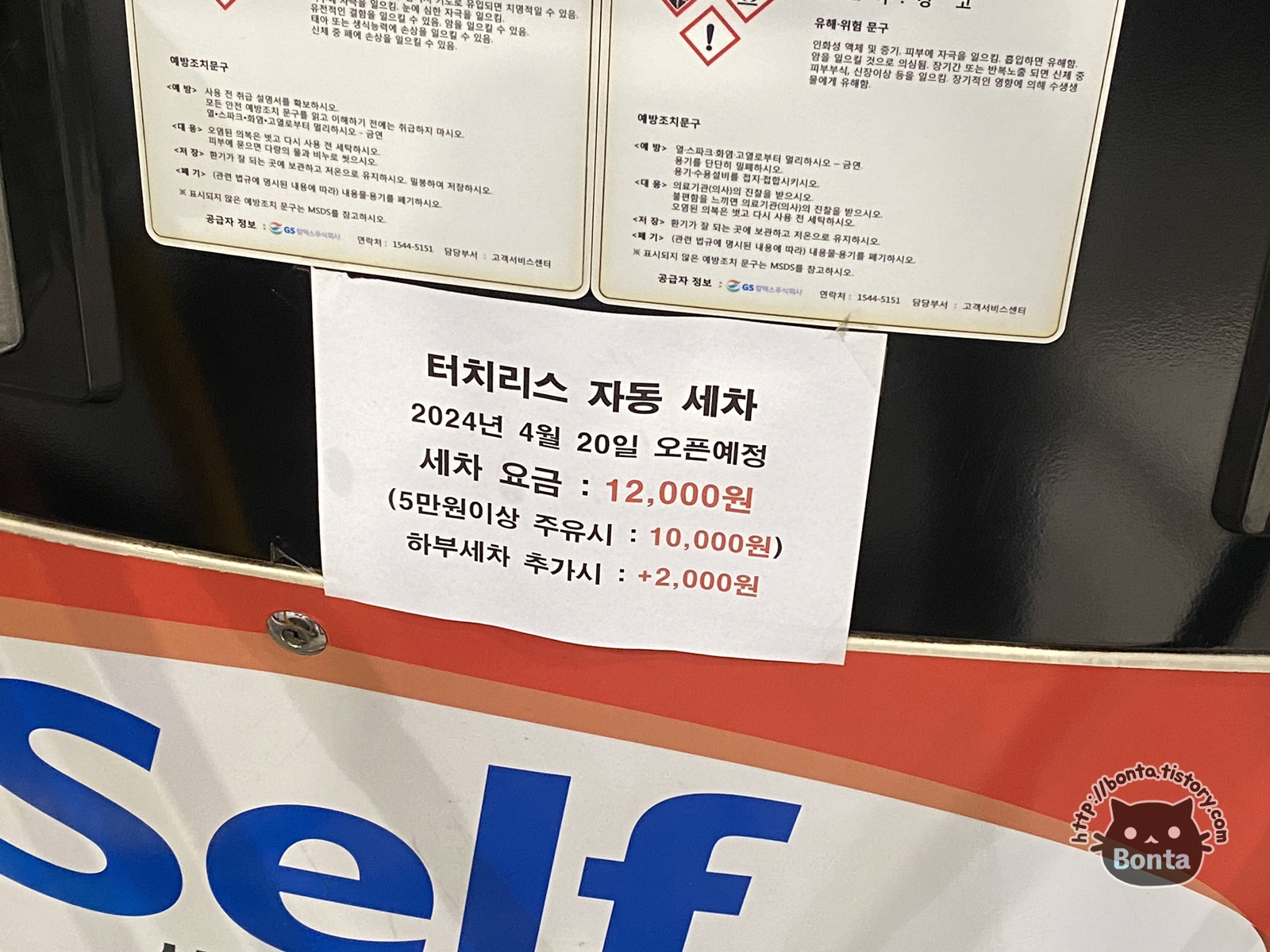 터치리스 세차는 기본이 1.2만원, 주유할인을 적용해도 1만원이란다.
