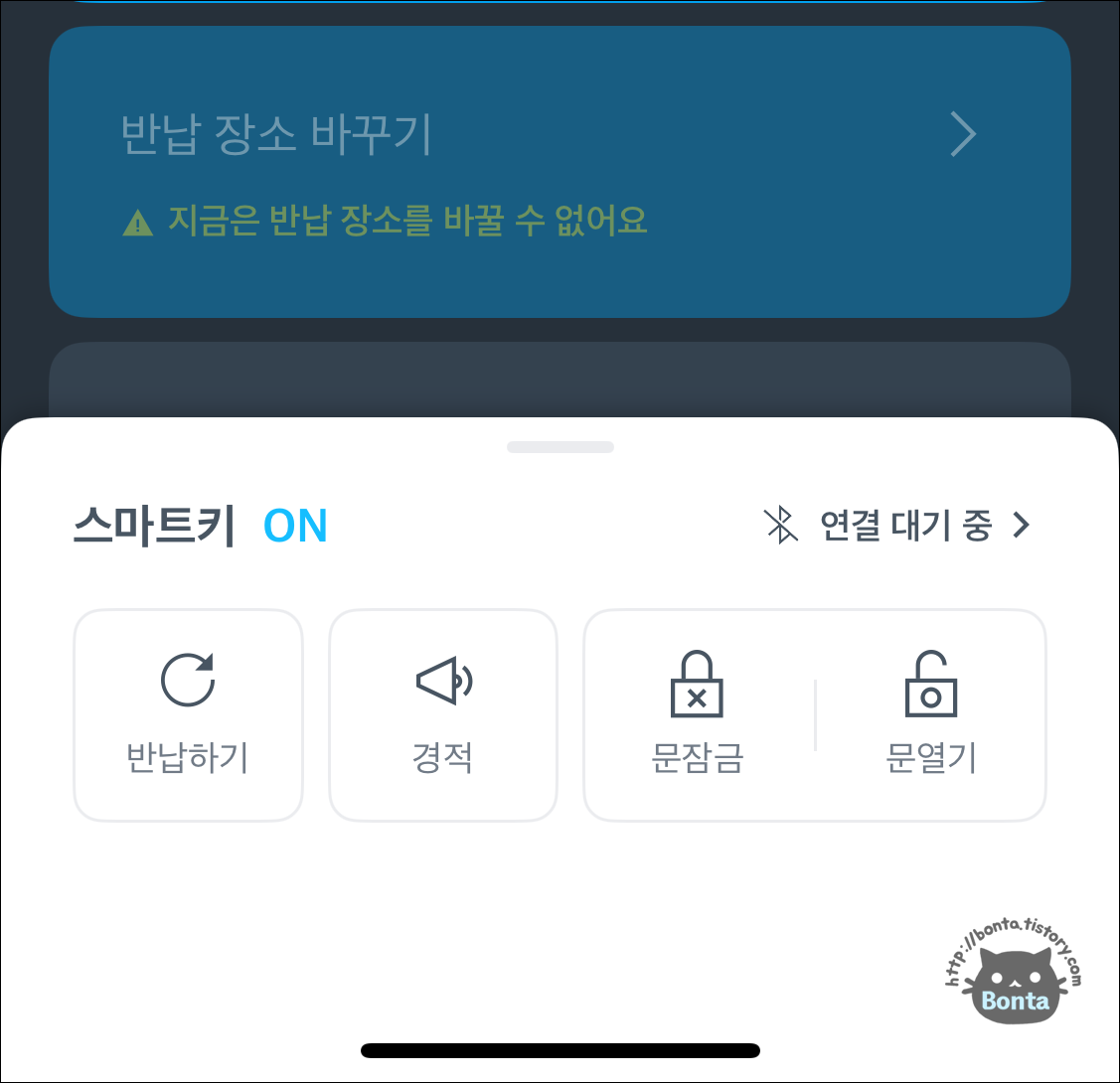 쏘가 앱을 열면 하단에 현재 사용중인 차량의 스마트키 옵션이 노출되는데