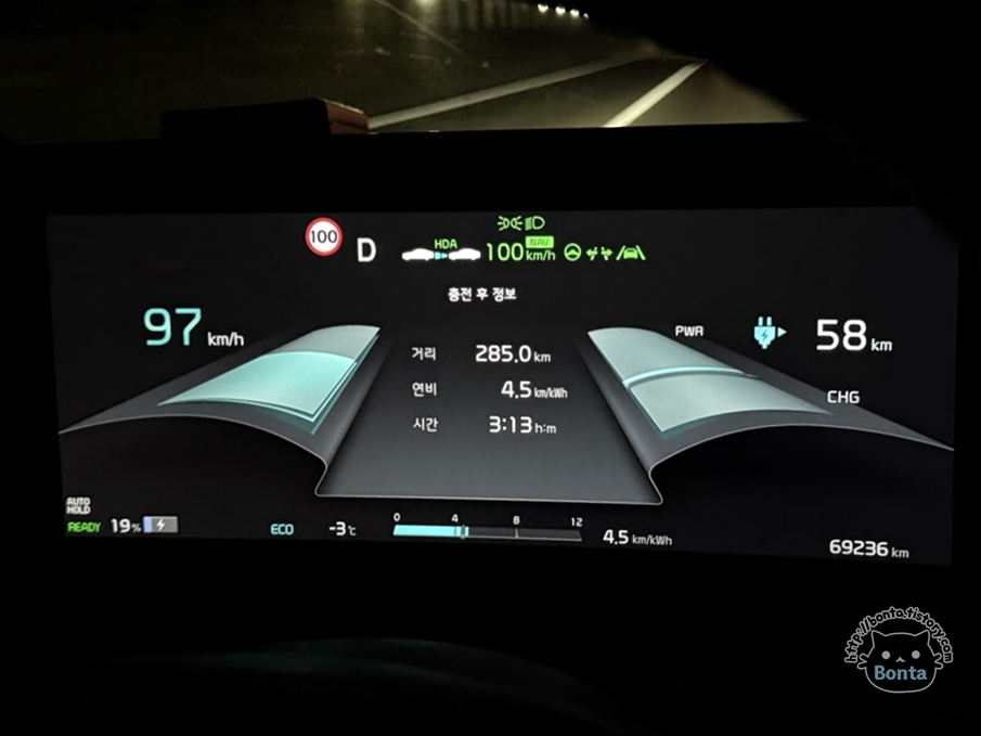 중간에 고속도로 휴게소에서 충전을 한번 해야 했을 정도.