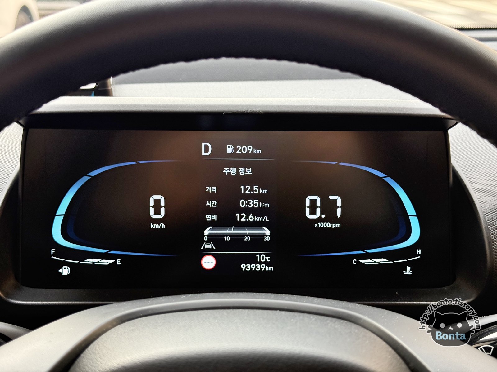 계기판은 레이와 거의 동일한 모습이지만 좌우의 클러스터(?) 영역이 조금 더 허전한 모습.