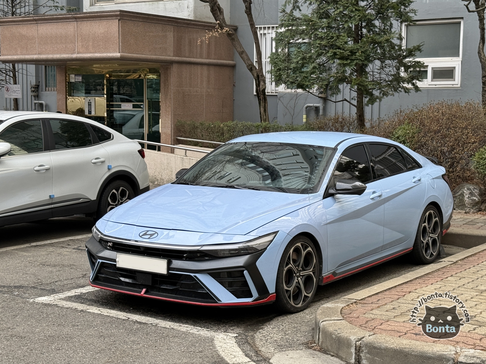 N의 시그니쳐 컬러 퍼포먼스 블루와 범퍼 하단의 빨간 라인이 강렬한 인상을 준다.