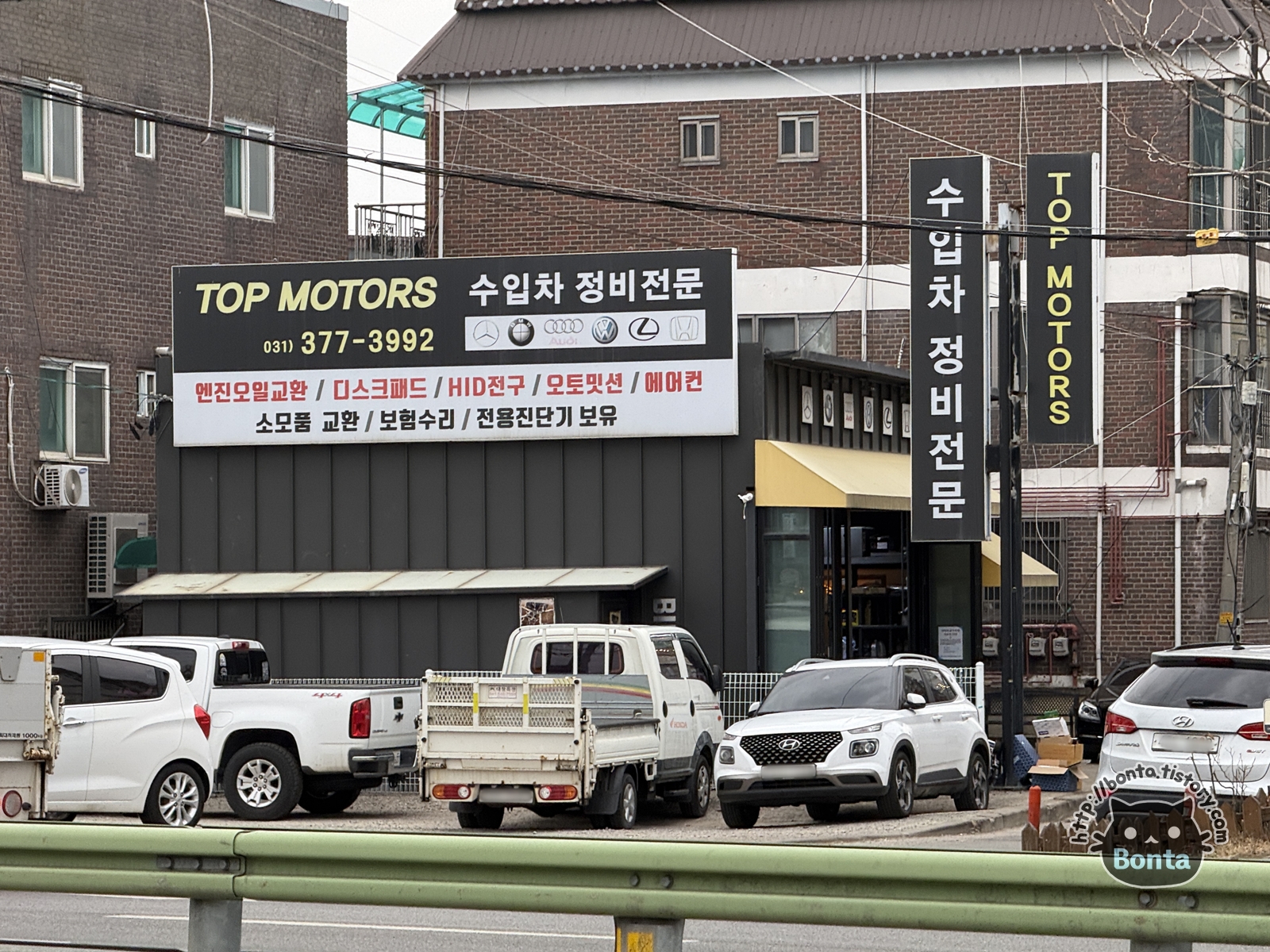 오색시장을 벗어나 큰길로 나오니 눈에 들어오는 탑모터스.
