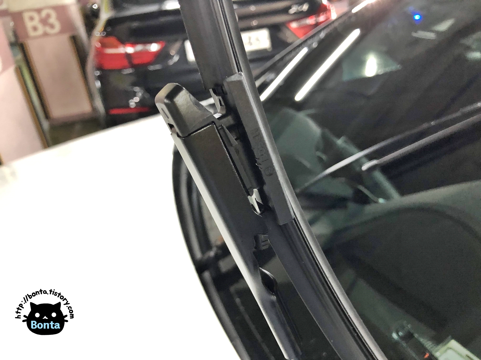 와이퍼 교체는 간단하다 헤드 부분을 걸쇠에 걸친 후,