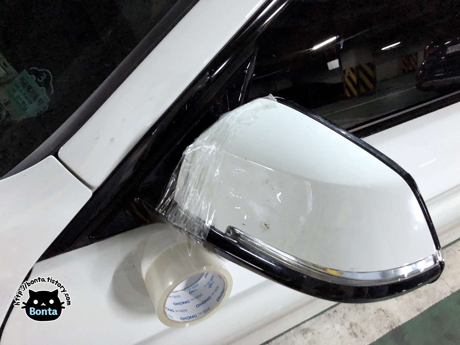 부러진 사이드미러는 아쉬운대로 테이프를 감고 다니기로 했다.