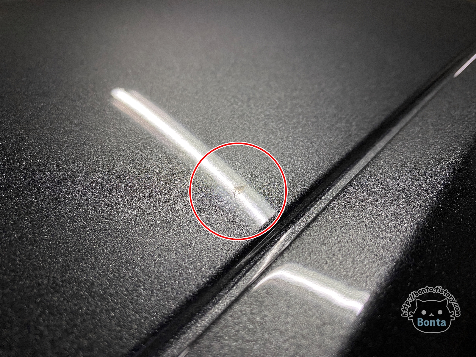 그 외에 클리어층과 도막이 벗겨져 나간 곳이 몇 군데 보인다.