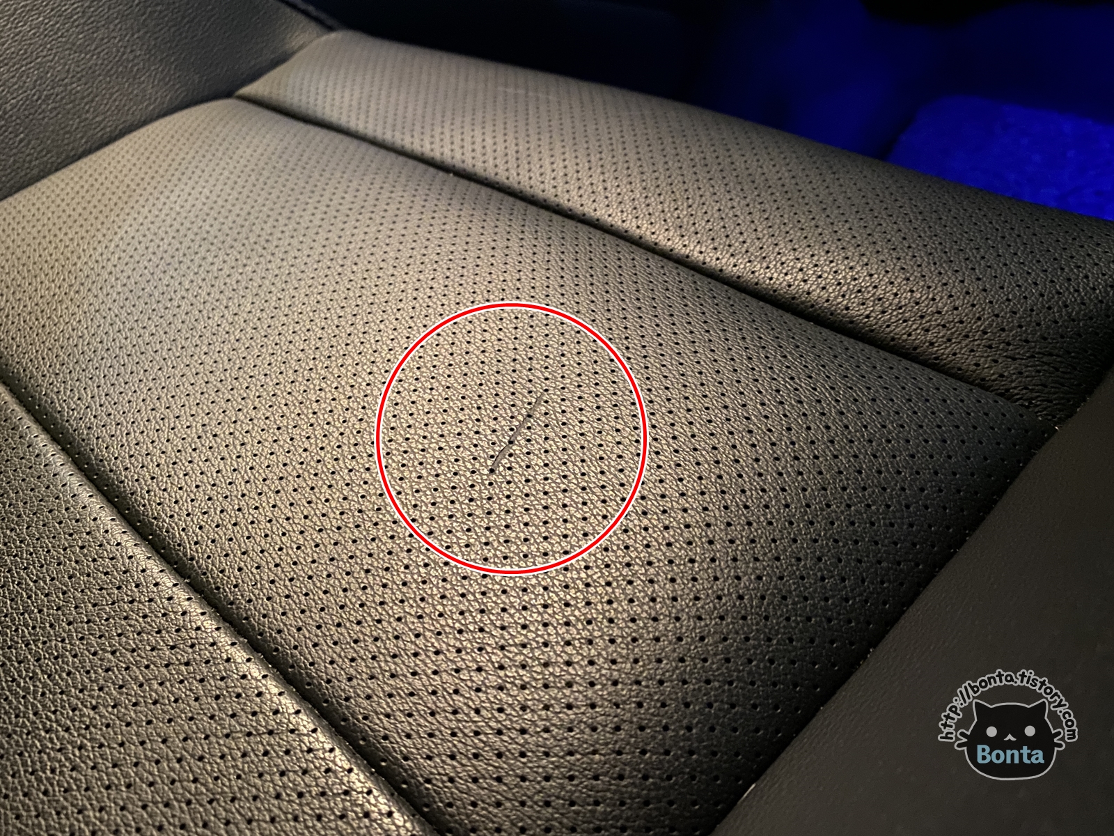 조수석 시트에도 손상이 있었다.