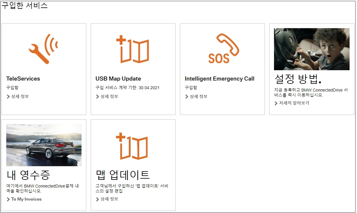 BMW 커넥티드 드라이브 홈페이지에서 로그인 하면 현재 구입한 상품 목록이 노출된다.