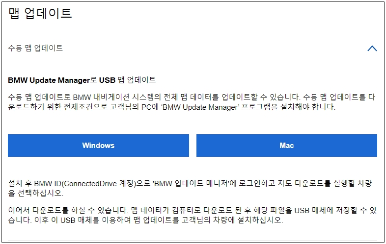 그간 분리해 운영하던 맵 업데이트 홈페이지 (https://www.bmwmapupdate.co.kr)를