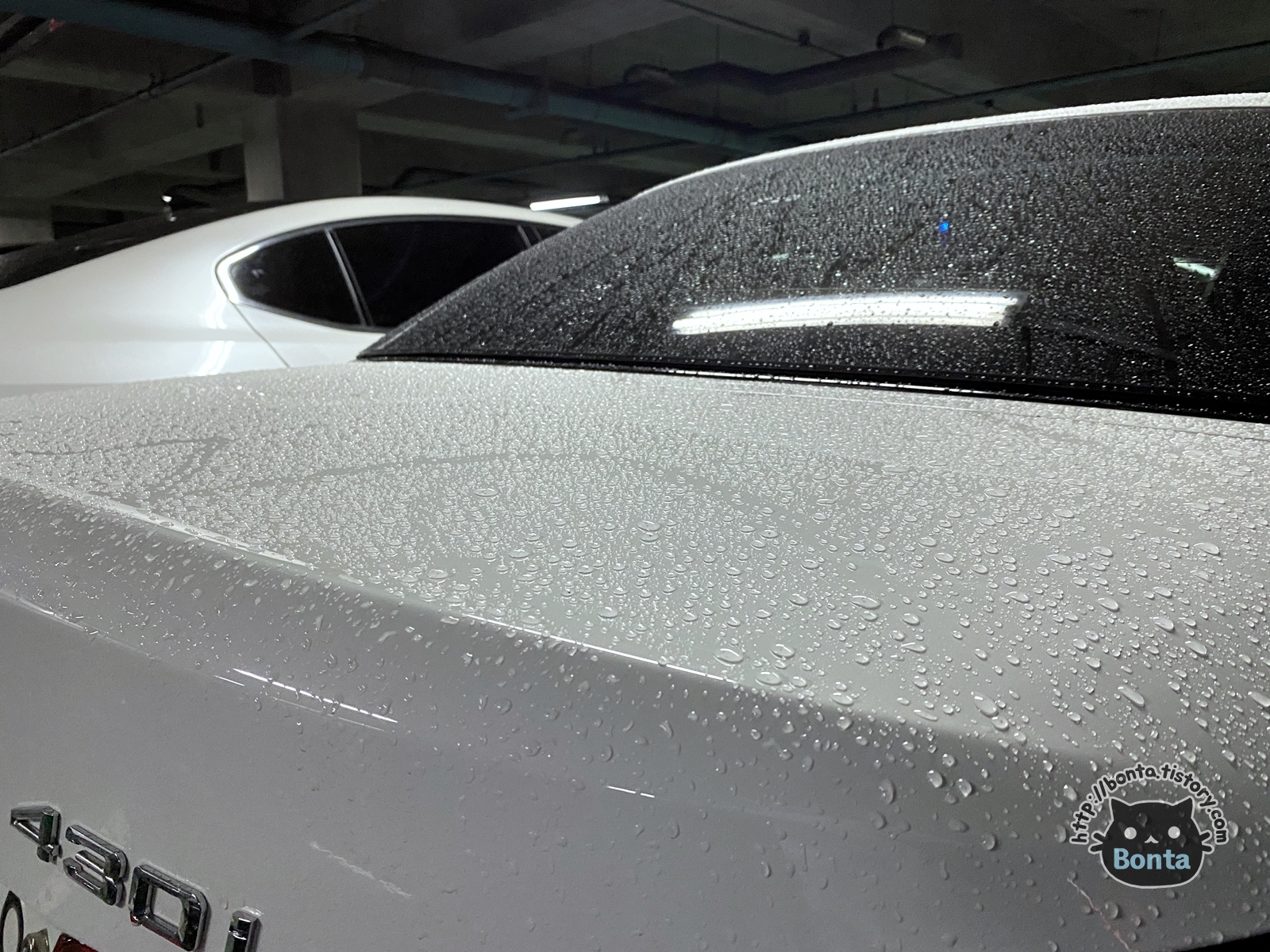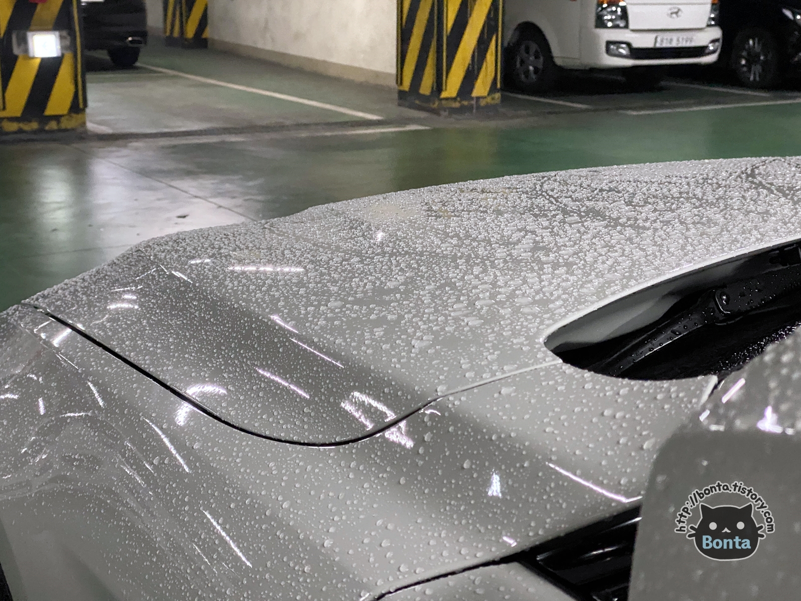 물방울이 고여 있을 수 밖에 없는 뒷 범퍼 라인과 트렁크 리드 쪽을 제외하면 마치 비를 안 맞은 것처럼 보일 정도.
