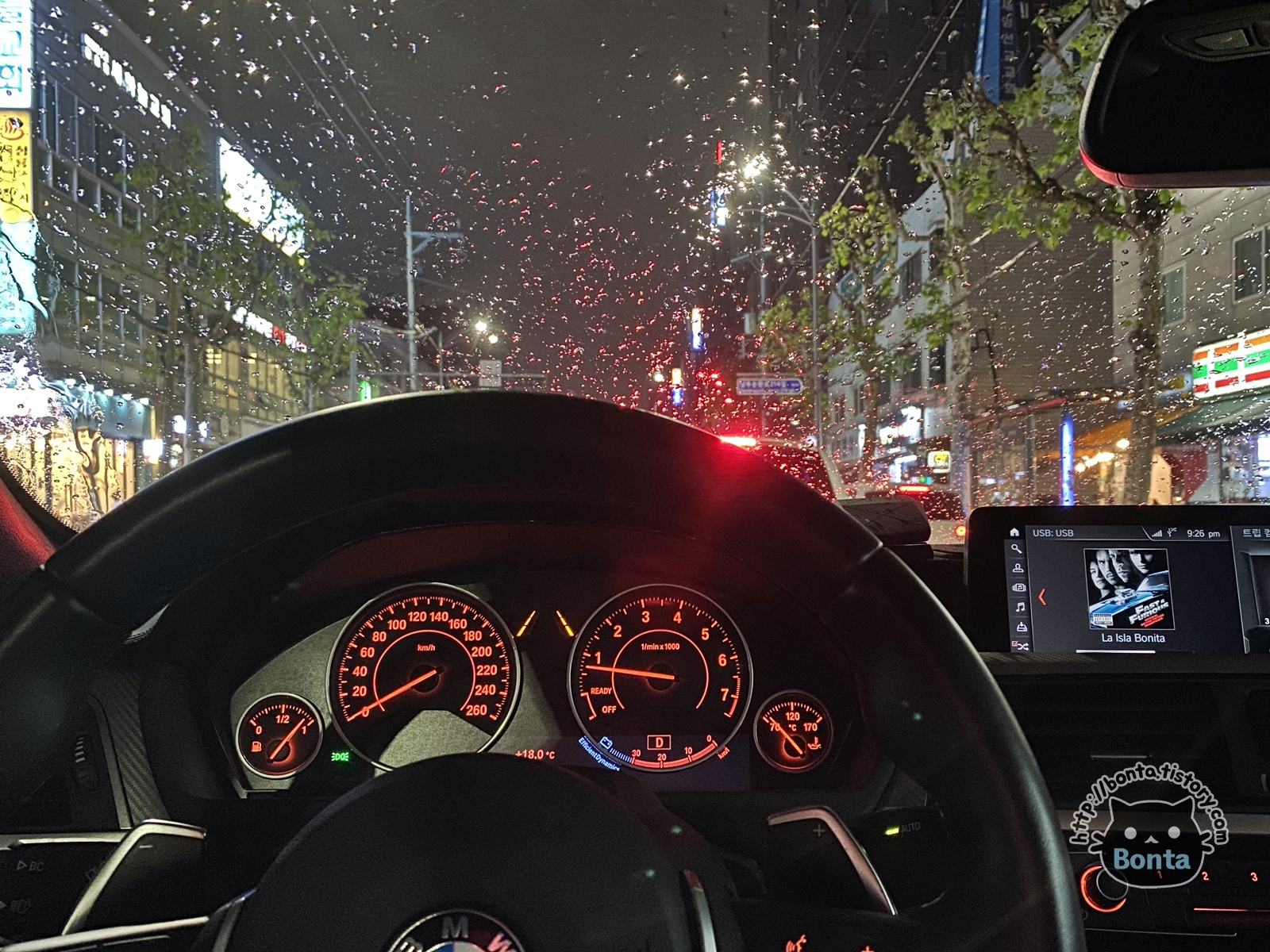 세차를 한지 딱 일주일 되는 날이었고 첫 비는 고속도로에서 약 300km 정도,