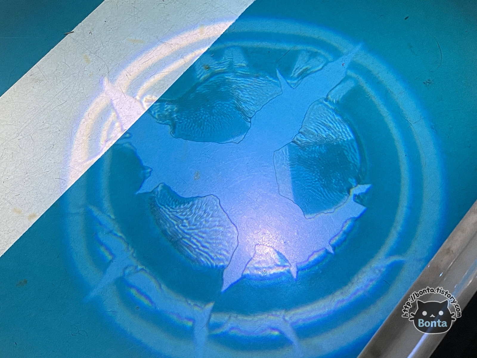 열 때문에 로고가 새겨져 있는 필름에 변형이 왔는데...