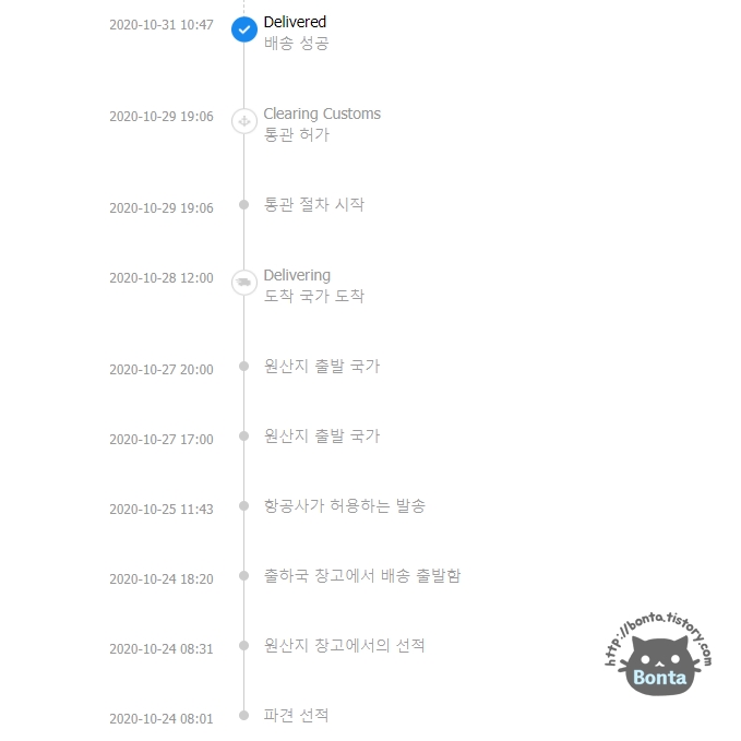 10/21 에 주문을 넣어서 제품을 받아본 건 10/31.
