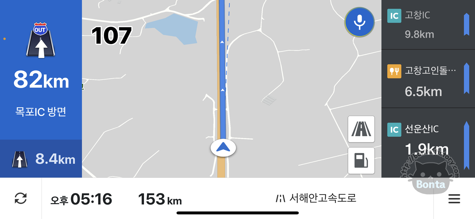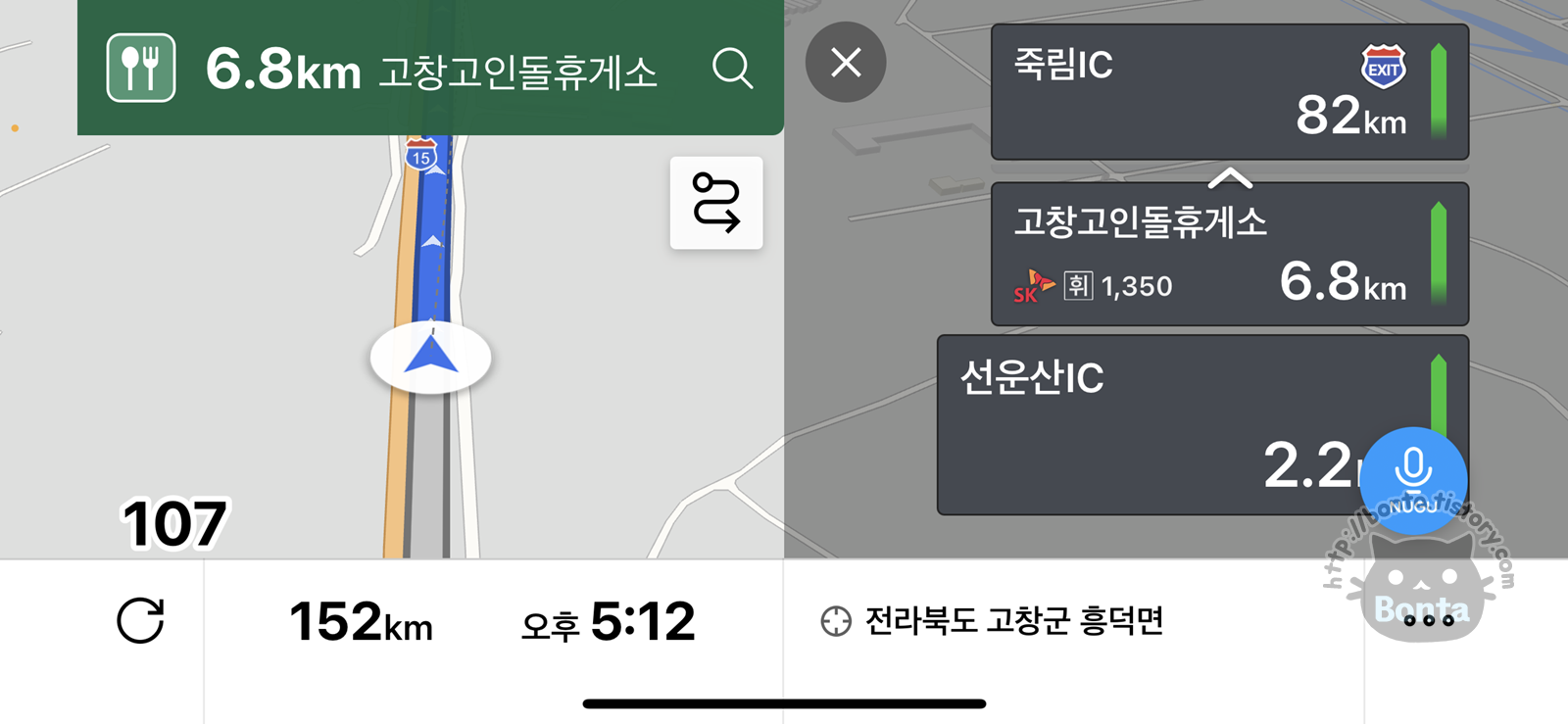 화면 절반을 잡아먹고 있던 고속도로 이정표가 사라져서 그나마 지도가 조금 시원해 보이고,