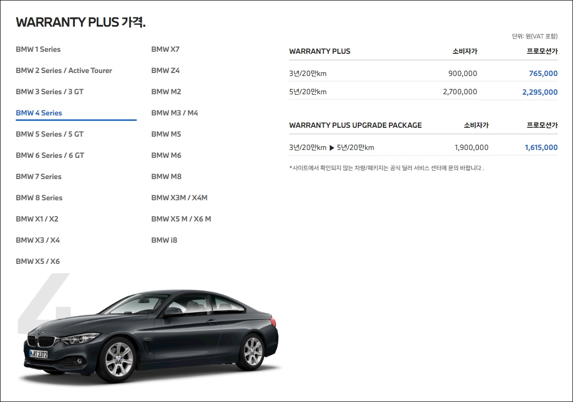 필자의 차량인 4시리즈는 기본 가입 금액이 190만원이다.
