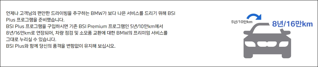 340만원을 지불하면 BSI 프리미엄 가입자를 대상으로 보증 기간을 8년 16만km로 늘려준다.