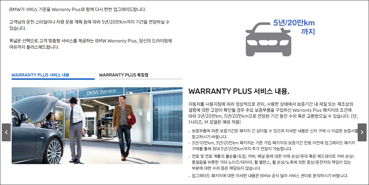 3년 10만km, 혹은 20만km인 BMW 공식 서비스 보증을