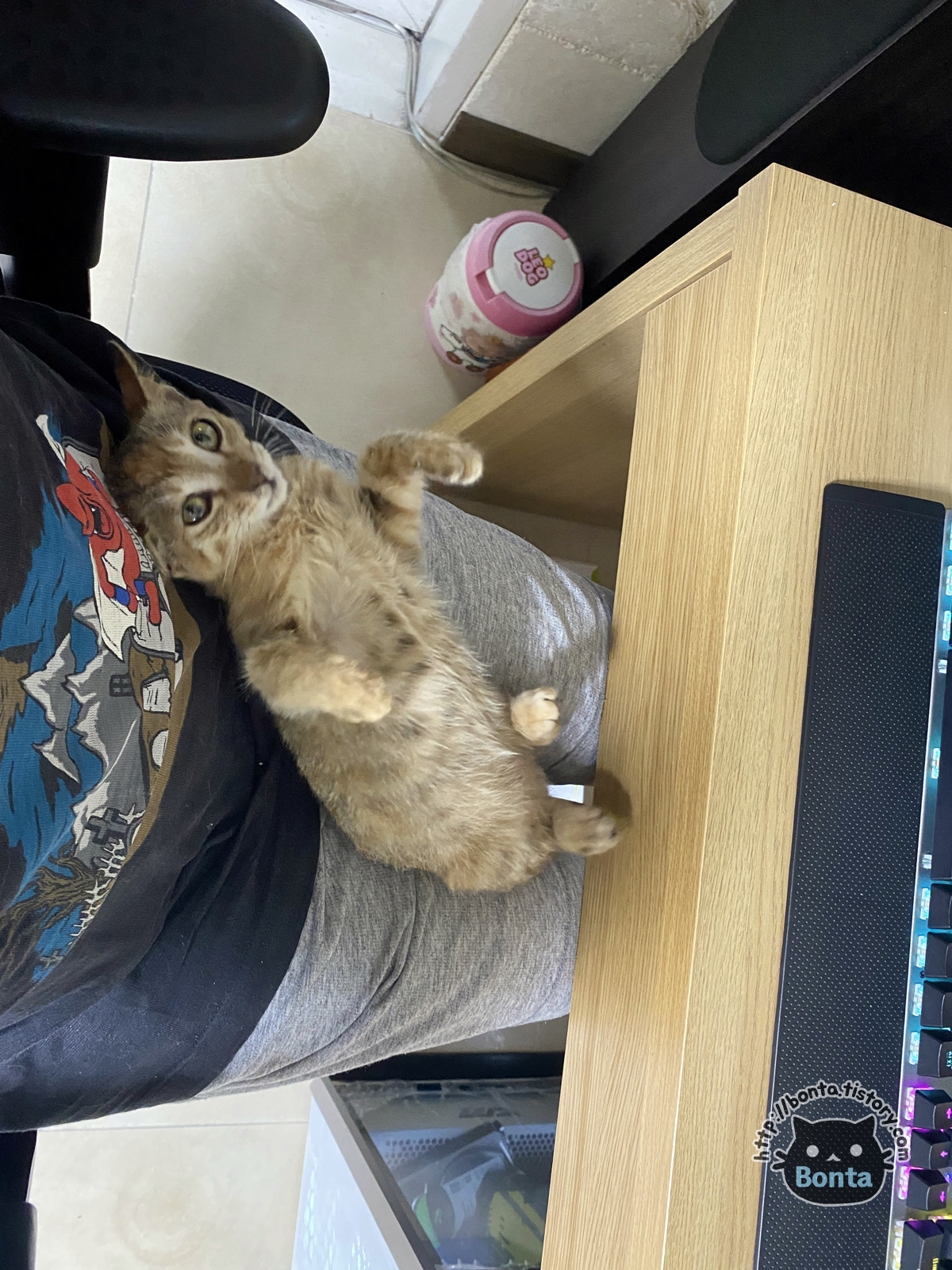 집에 온지 하루만에 무릎냥 탄생.
