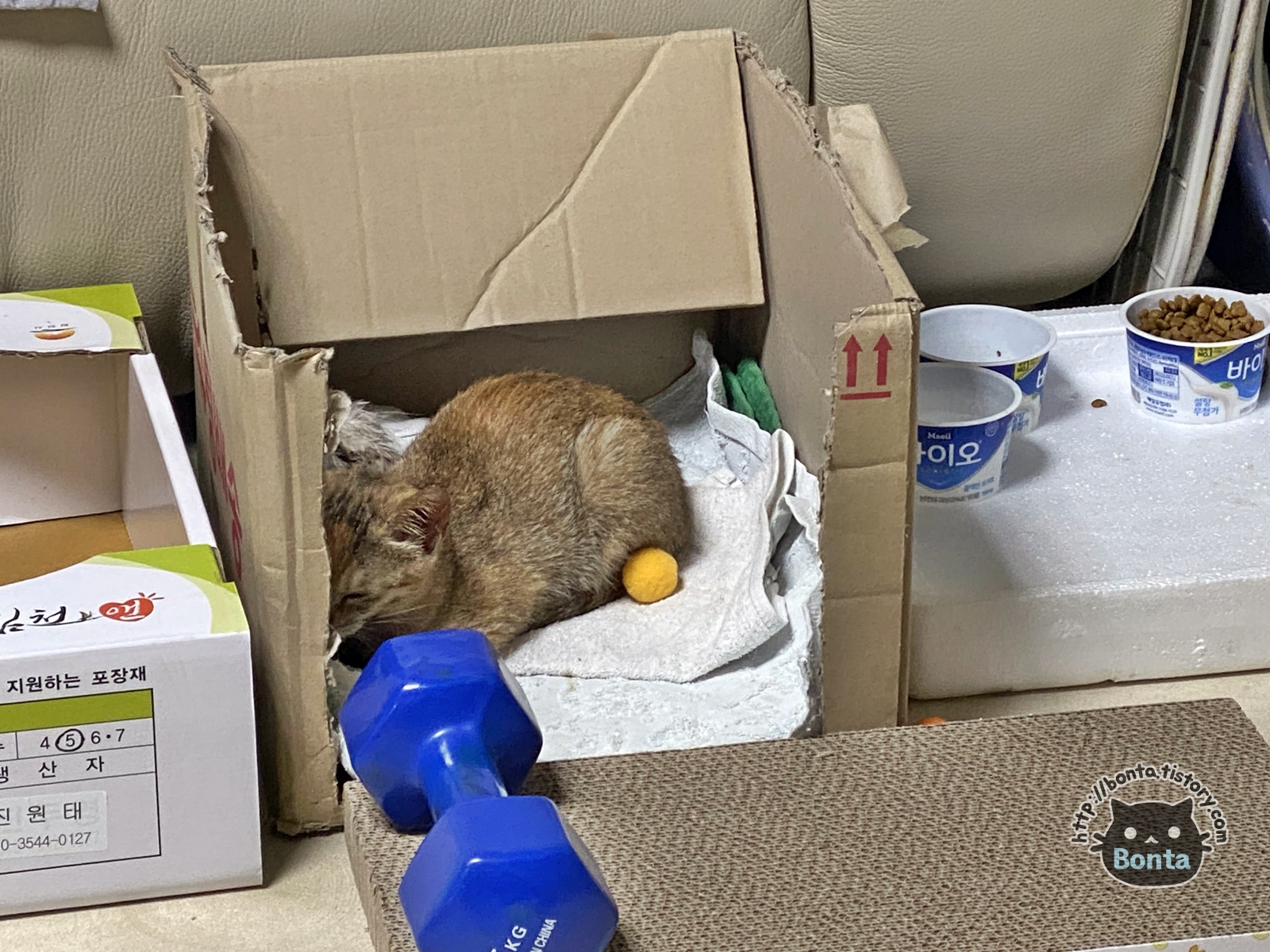 간단히 고양이 용품들을 사서 돌아와 보니