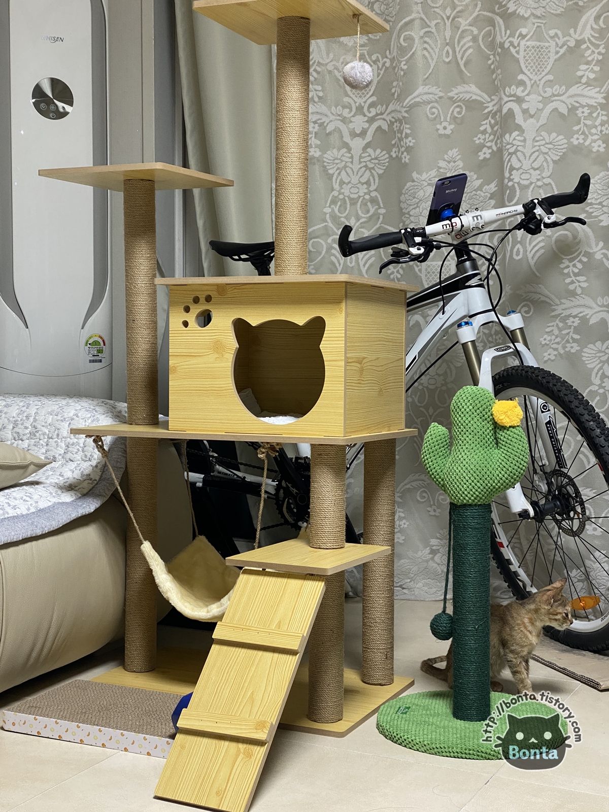 캣 타워 전체 크기는 괘 높지만 기둥은 각 층이 나눠져 있다.