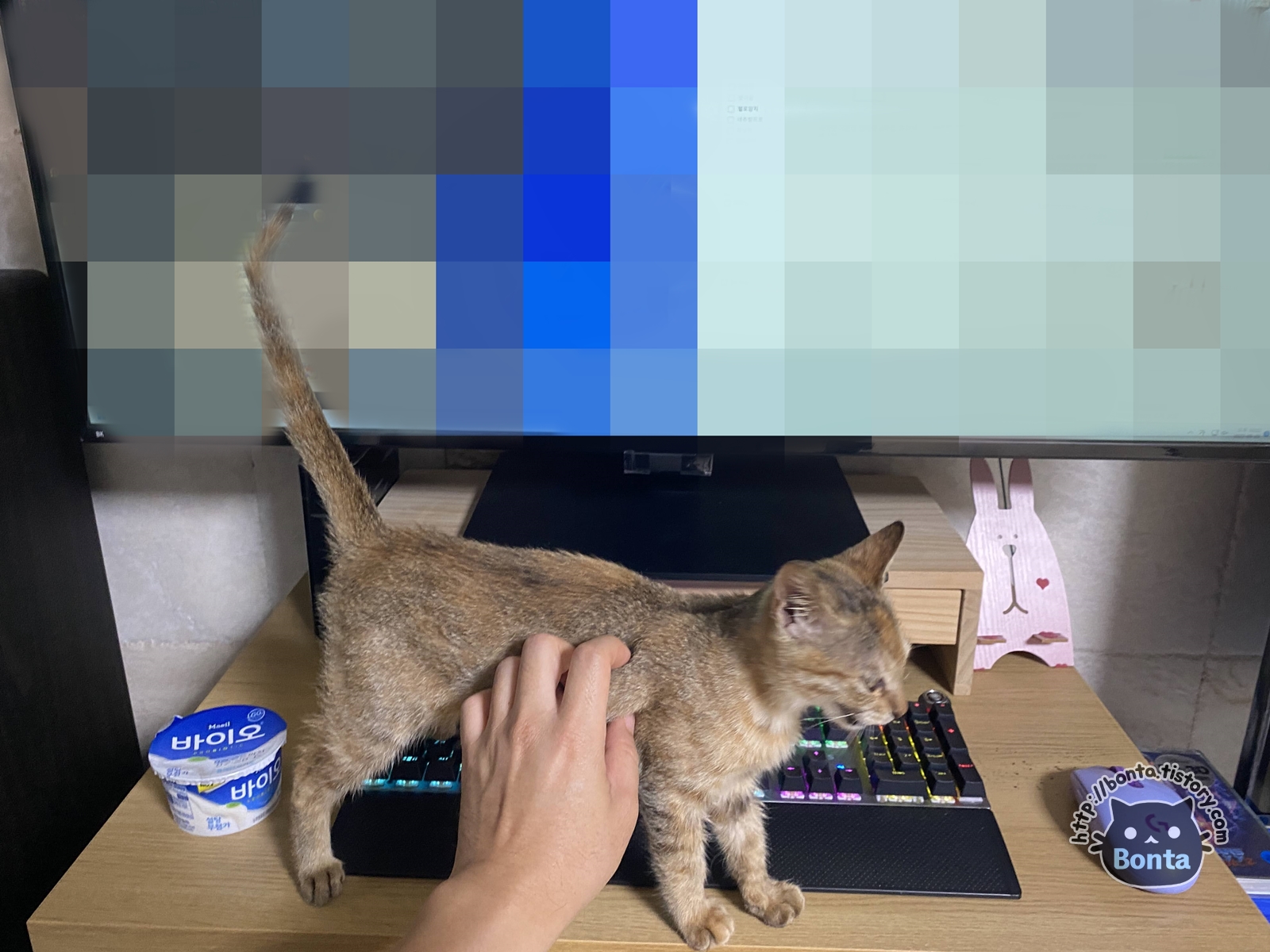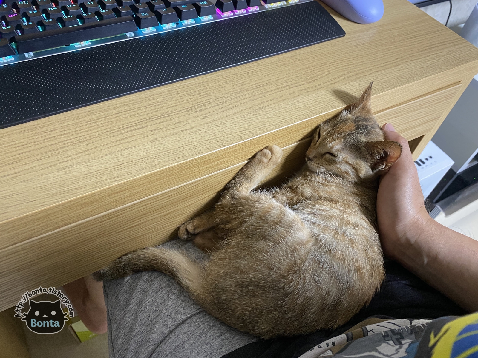 심지어 잠도 꼭 책상을 거쳐 내 무릎에 와서 잔다.