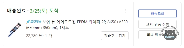주문한 와이퍼는 개인적으로 선호하는 보쉬 에어로 트윈.