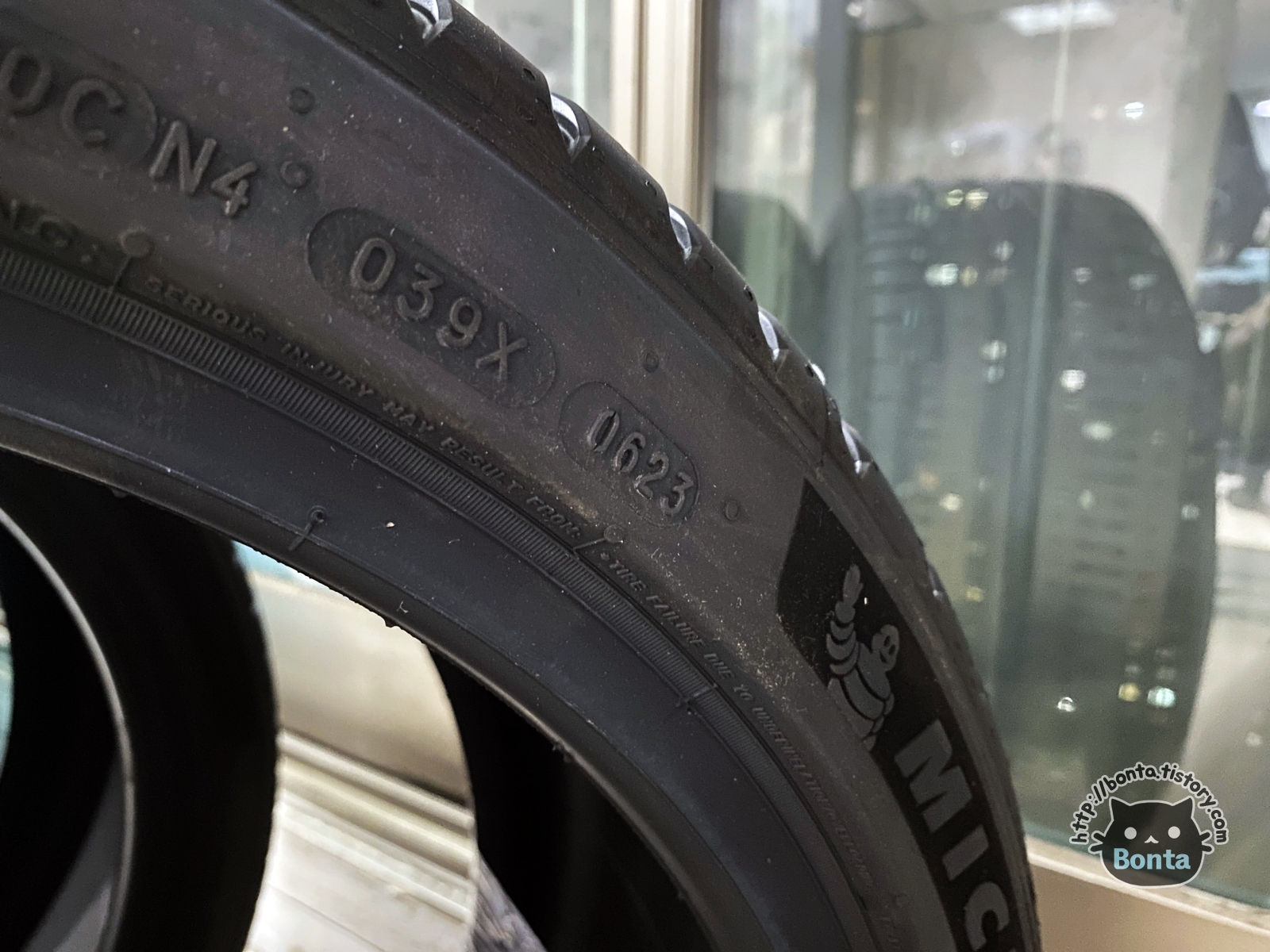 사진 하단에 빼꼼히 보이는 미쉐린 로고 부분은
