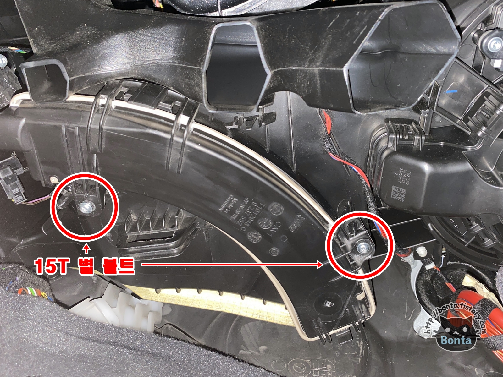 15T 별 드라이버로 커버의 볼트 두개를 풀어내면 어려운 작업은 모두 마친 것.