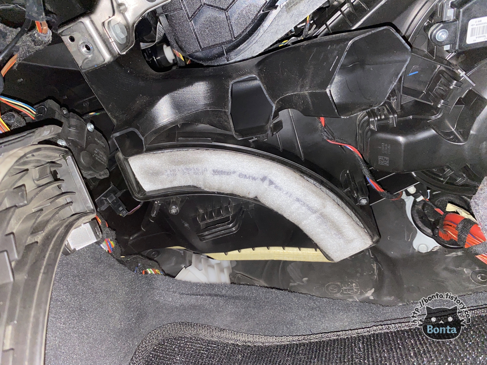 우측으로 조수석 풋등 배선이 눈에 들어 온다.