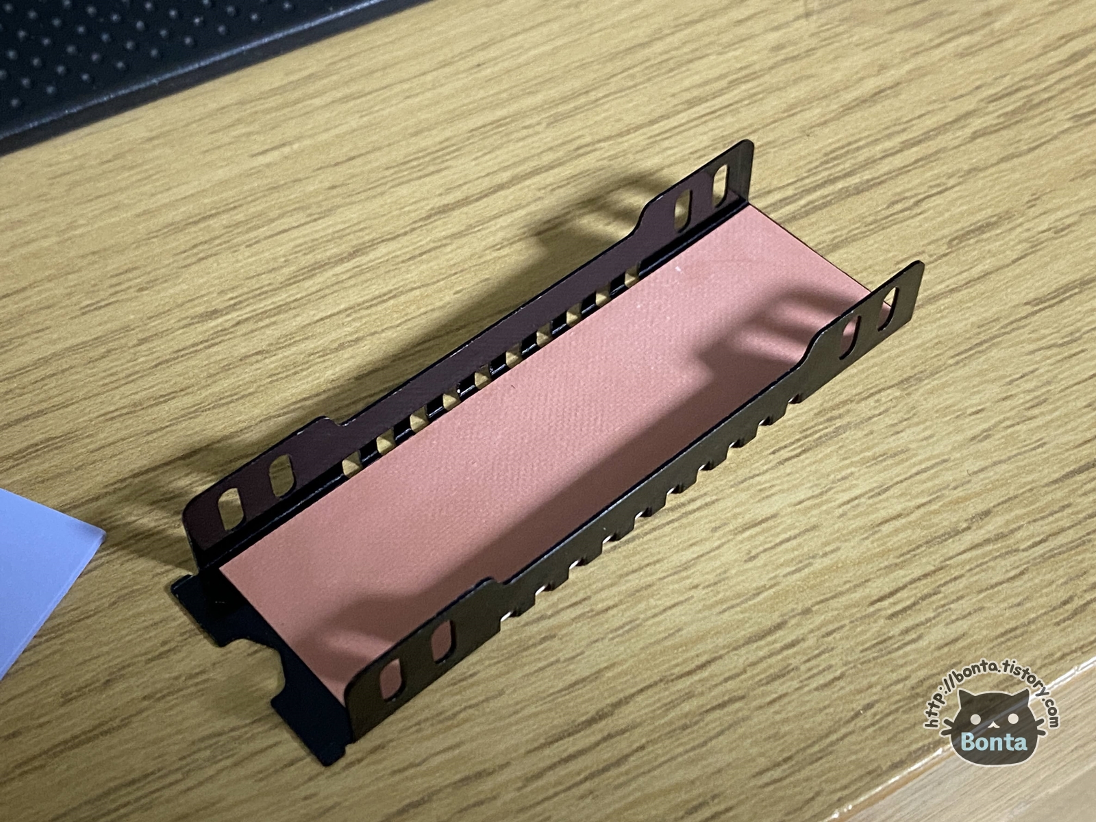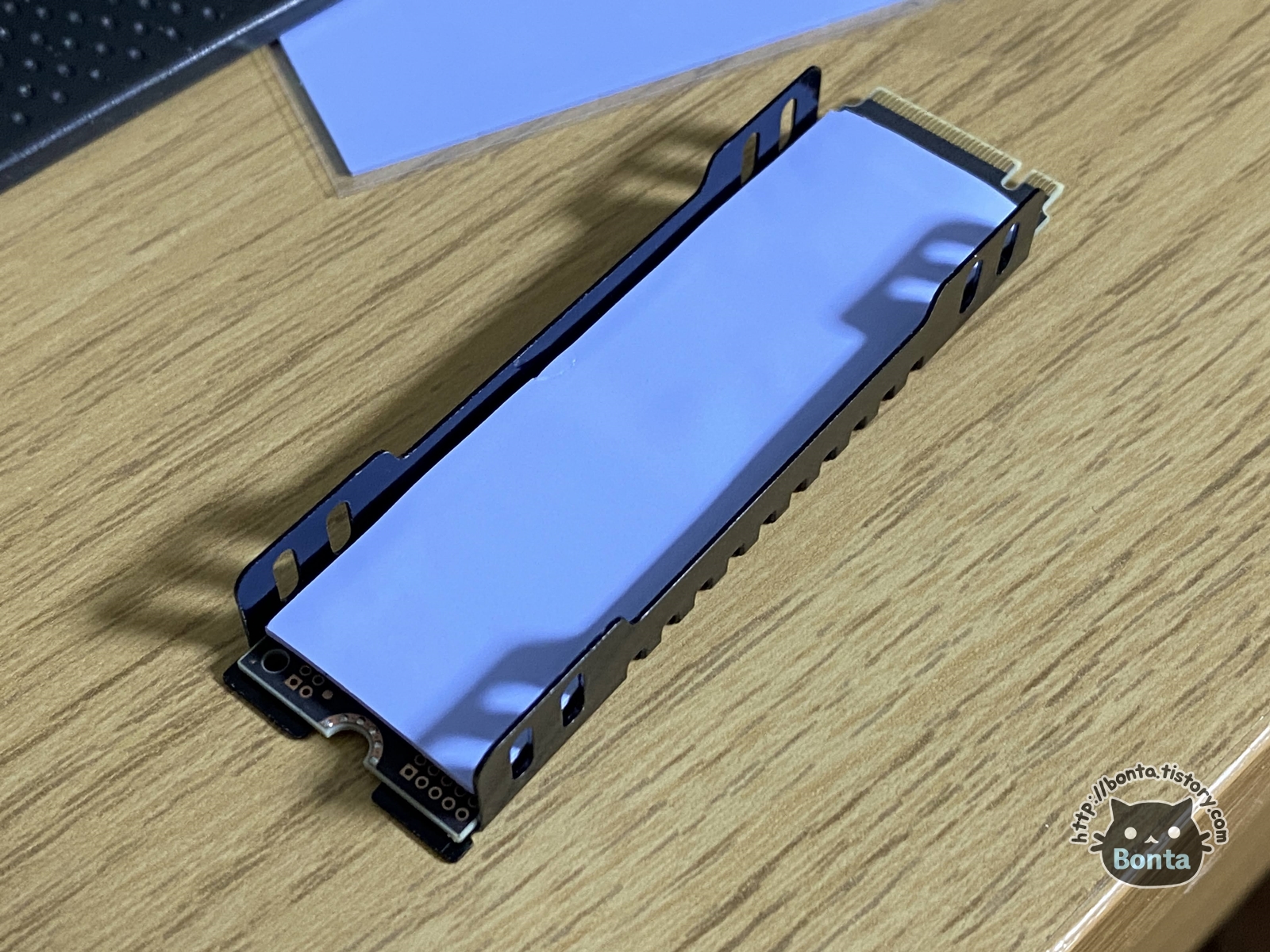 SSD 하단에는 붉은색 서멀패드를, 상단에는 푸른색 서멀패드를 부탁했다.